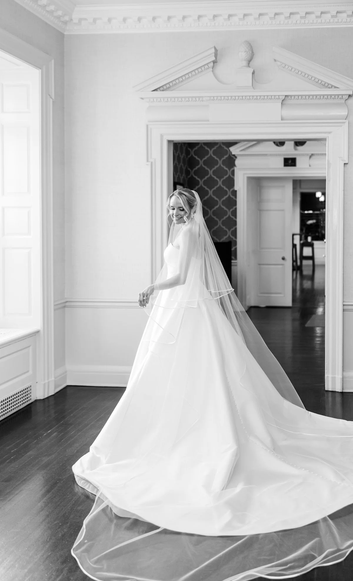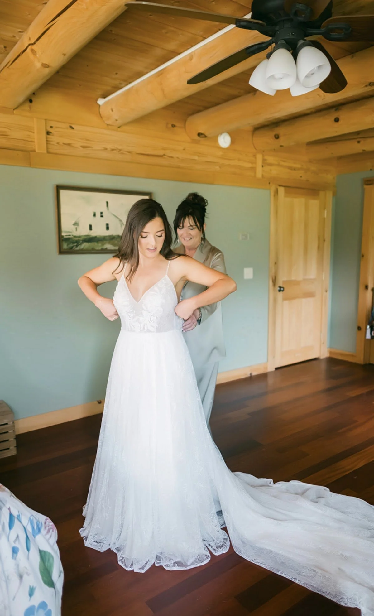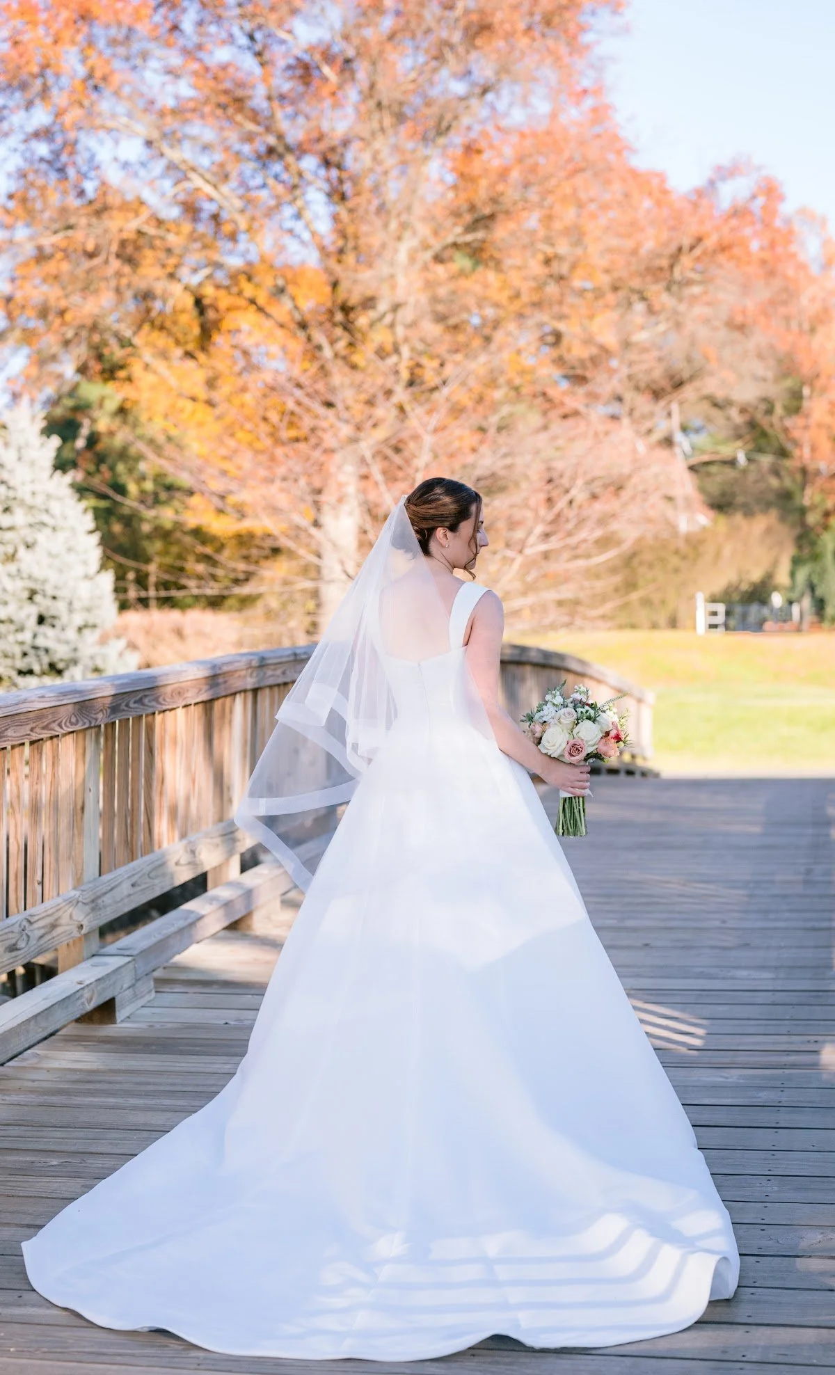 "...I went in for three fittings and Deb worked her magic with the alterations and they really listened and addressed any concerns I had. I wanted a ballroom bustle and straps added and it was all perfect by the third fitting and on my wedding day!"